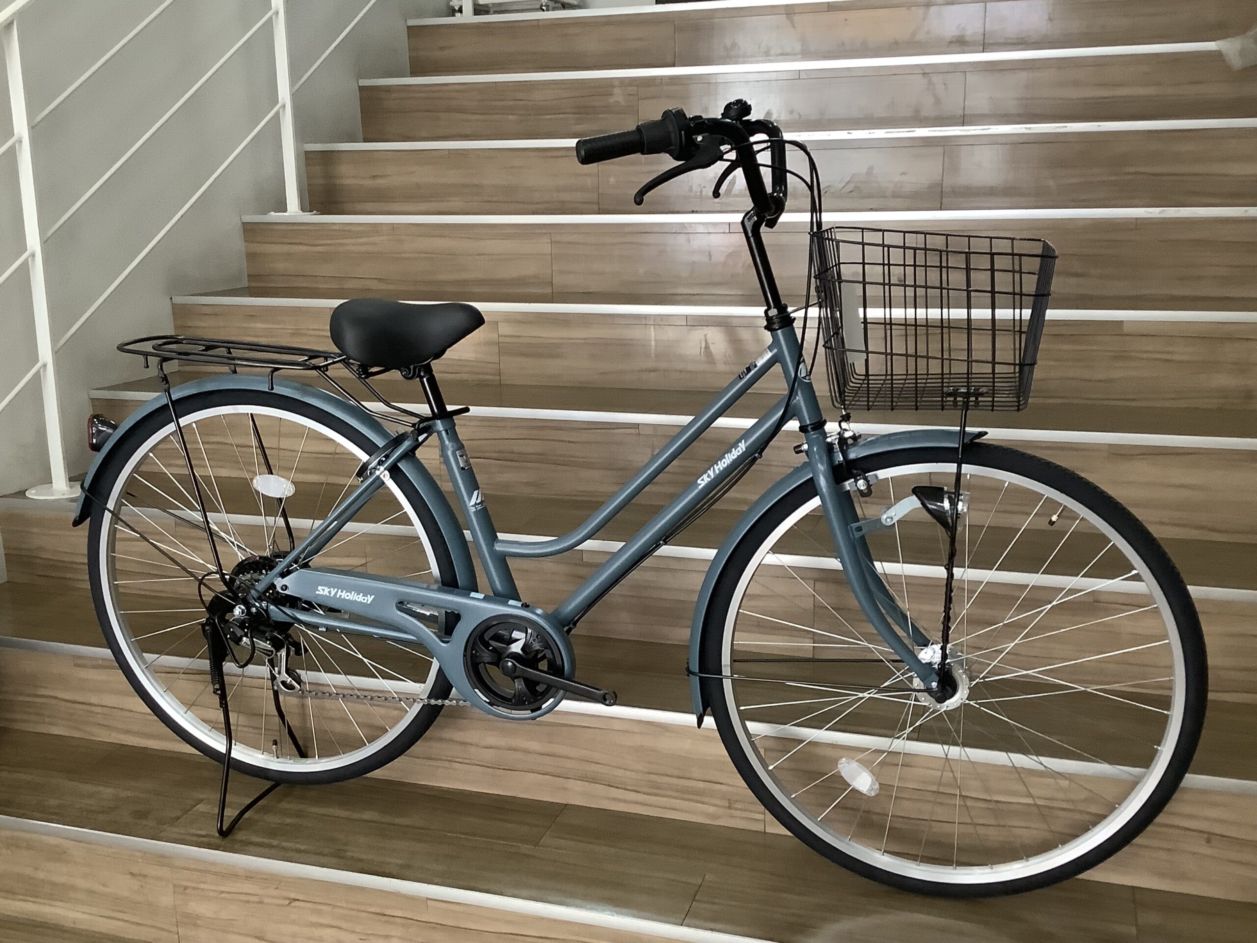 バスケット付クロスバイク。 アルミフレーム 6段変速。